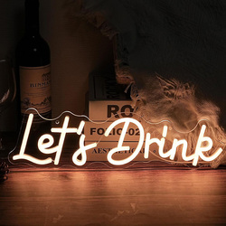 دعنا نشرب علامة ضوء نيون ليد أبيض دافئ ديكور جداري يعمل بمنفذ USB للمنزل وحفلات الزفاف للإعلان عن المباني